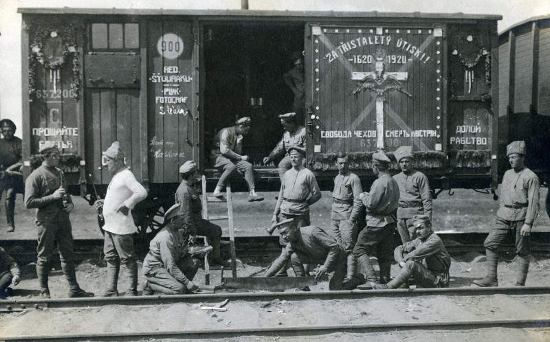 1 Чехословаки возле своего эшелона в Сибири