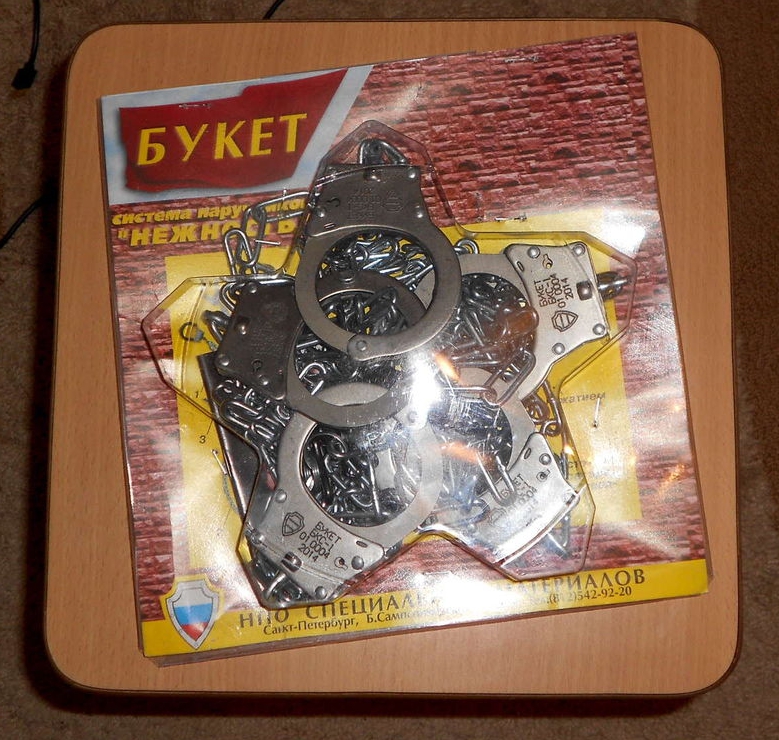 Конечно, могут возникнуть ситуации, когда наручников может на всех не хватить. НПО Специальных материалов предусмотрело этот форс-мажор, подготовив аналог БКС-1 – комплекс наручников на пятерых, из-за чего эту модель назвали «Букет». Видимо, оттого, что есть подозрение, будто каждый в этой группе еще тот цветочек. Есть, конечно, особые случаи – для активных борцов с демократией путинского пошиба подготовлены наручники со штырем для вбивания в стену под название «Прикол». Это – дань молодежному сленгу, в котором «прикол» означает шутку или розыгрыш. Словом, с «Приколом» то еще веселье.