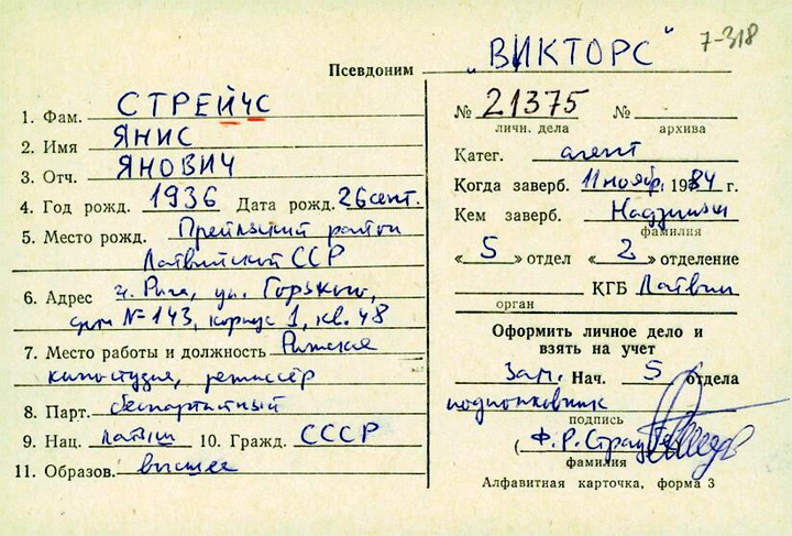 Здесь следует сделать оговорку. То, что сегодня рассекречивается, – лишь небольшая доля латвийских «мешков Пандоры». После развала СССР сотрудникам КГБ удалось вывезти личные дела «стукачей» по долгу службы и по призванию души – а это, безусловно, самые ценные сведения – из Латвии в Россию.