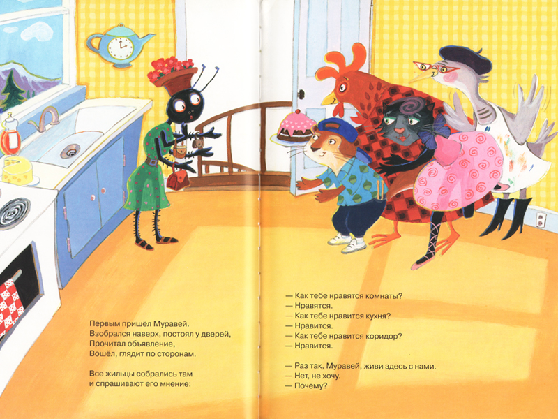 При этом если трехлеток в сказке интересуют, прежде всего, сами персонажи – она помогает им познакомиться с различными видами насекомых, животных и птиц, то дети 5-7 лет обращают внимание в первую очередь на взаимоотношения между соседями. С помощью этой сказки они осваивают сложный мир человеческих отношений, необходимость уважать каждого человека и принимать его таким, каков он есть, со всеми недостатками.