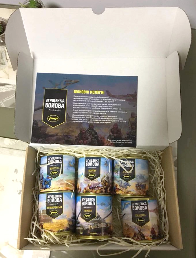 Вот по причине того, что жертв не было, молкомбинат и решил выпустить продукт «Згущенка бойова». Письмо в минобороны гласило (далее цитата): «Уважаемые коллеги! Передаем вам подарок от Ичнянского молочно-консервного комбината – крафтовое сгущенное молоко, изготовленное в поддержку Вооруженных сил Украины».