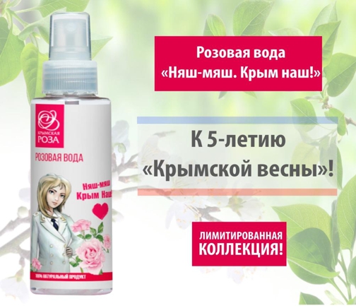 Подробней о частностях. Комбинат «Крымская роза» к пятилетию российской аннексии Крыма выпустил партию розовой воды с мультяшной Поклонской на флаконе. Идея: Крым, наконец, заблагоухал после весны 2014, которую Москва пытается представить как символ долгожданного освобождения от украинского ига. Свобода получила косметическое воплощение.