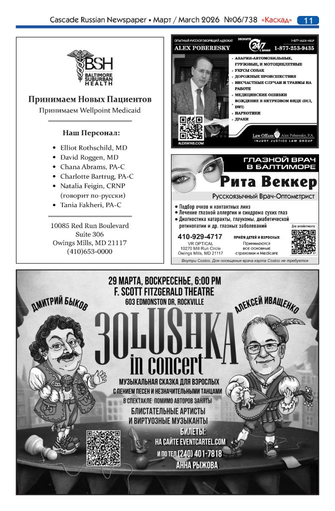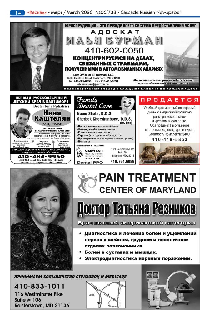 Оплату за рекламу присылайте по адресу: 9813 Middle Mill Drive, Owings Mills, MD 21117