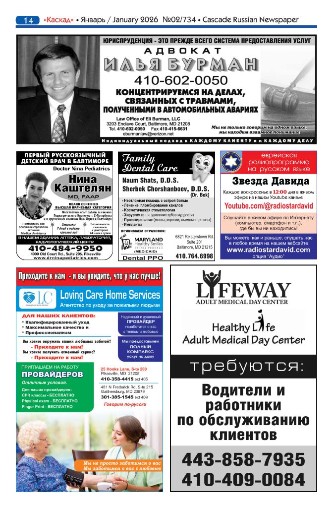 Оплату за рекламу присылайте по адресу: 9813 Middle Mill Drive, Owings Mills, MD 21117