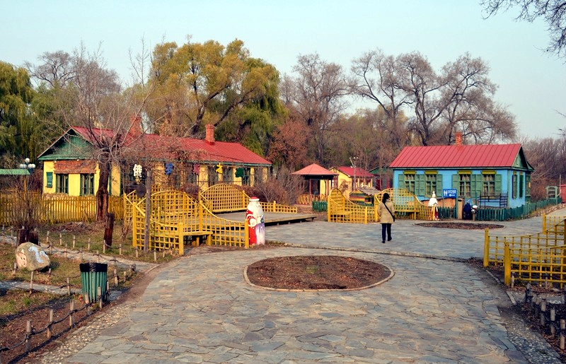 Скоро мы были в «Русской деревне». Так называется фольклорный парк в стиле аля-рюс на Солнечном острове – районе на другом берегу Сунгари.