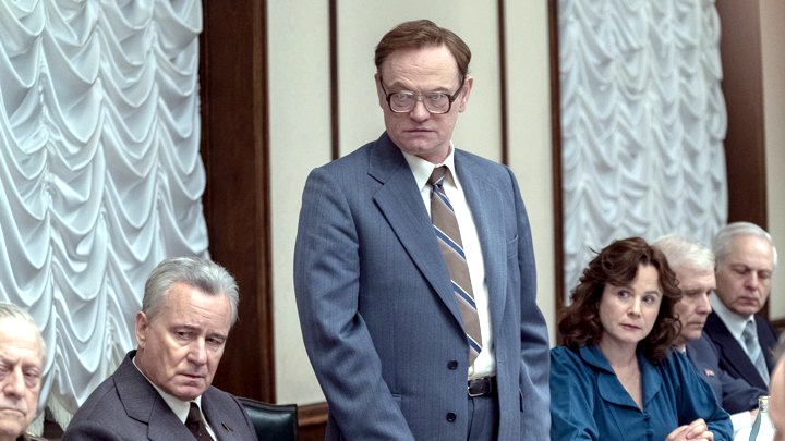 Chernobyl, США – Великобритания, 2019, 320 мин., R. Реж. Йохан Ренк (сериал «Во все тяжкие»); в рол.: Джаред Харрис (Валерий Легасов), Стеллан Скарсгорд (Борис Щербина), Эмили Вотсон (Ульяна Хомюк), Пол Риттер (Дятлов), Джесси Бакли (Людмила), Адам Нагайтис (Василий), Кон О’Нил (Брюханов), Эдриан Роулинс (Фомин), Сэм Тротон (Акимов), Роберт Эммс (Топтунов), Давид Денсик (М.Горбачёв), Марк Льюис Джонс (ген. Пикалов), Алан Вильямс (Чарков), Барри Кеоган (Павел), Фарес Фарес (Бачо)