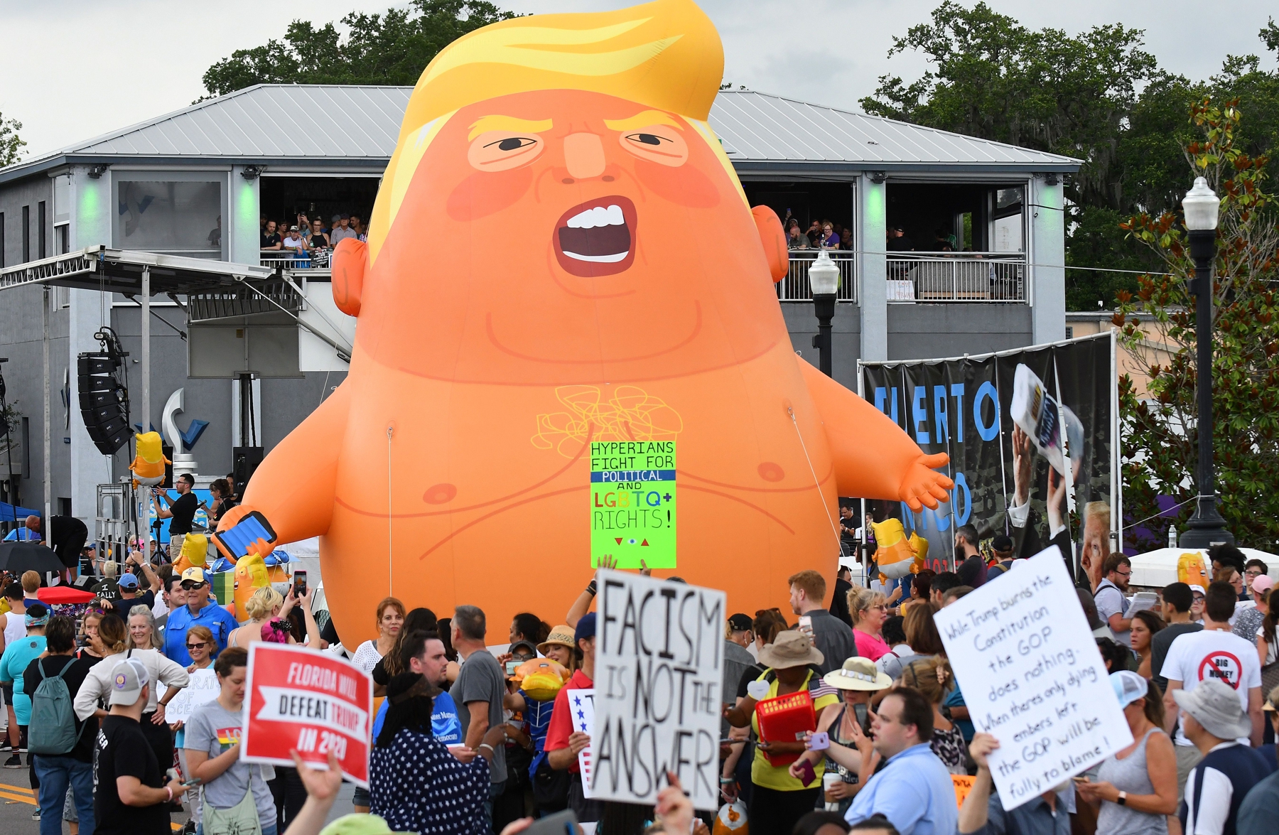 Это «Бэби Трамп» – злая карикатура в пеленках, вооруженная мобильным телефоном, – дирижабль, ставший синонимом сопротивления американскому президенту.