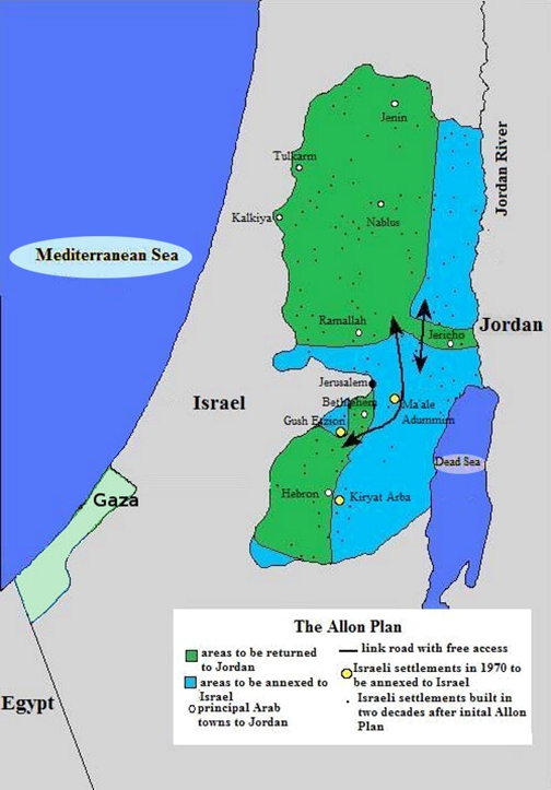 **Игаль Алон 1918-1980 – государственный и военный деятель Израиля. Занимал пост министра труда, заместителя премьер-министра и министра иностранных дел. Автор плана Алона, по которому Иорданская долина должна была стать частью Израиля.