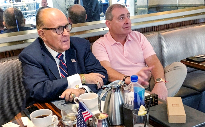 2 – Юрист Трампа Руди Джулиани на встрече с Львом Парнасом в отеле Trump International в Вашингтоне.