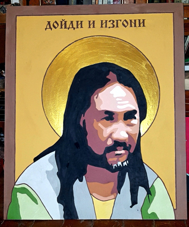 Пока шел попутчиков целый взвод понабрал. Известность его росла от километра к километру… До Новосибирска докатилась. Прознал про Габышева тамошний художник-авангардист Константин Еременко. Он и прежде обрел популярность в соцсетях. Чего только стоит воображаемый поединок Алексея Навального с Виктором Золотовым. Вот Еременко, познакомившись по материалам СМИ с шаманом, в фейсбуке выложил новую работу – стилизованное под икону изображение Габышева в образе святого. Так что премьера иконы под названием «Дойди и изгони», которую размножают сторонники шамана, состоялась на многочисленных митингах и пикетах в его поддержку.
