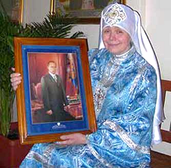 В принципе, мало ли самопровозглашенных светоносных гуру во главе сект на Руси… Но каждое локальное религиозное сообщество нуждается в уникальном достоянии. А у Большой Ельне такового не было. Вот и заказала госпожа Фролова… извините, матушка Фотиния некоему неизвестному сельскому маляру портрет президента Путина. «Да чтоб с нимбом, как у святого!» Маляр кивнул и через пару недель принес работу. Чтобы придать величие Путину, Фотиния в своих проповедях утверждает, что это сегодня он президент, а в прошлых жизнях кем только ни был: сначала апостолом Павлом, потом князем Владимиром. Причем, сама матушка в далекой древности была известна, как царица Савская, княгиня Ольга и Зоя Космодемьянская. Иногда ее пробивает на откровенность, и она заявляет, что является сестрой Иисуса Христа, позиционируя себя, как «воплощение бога на земле». Вот такой исторический винегрет.