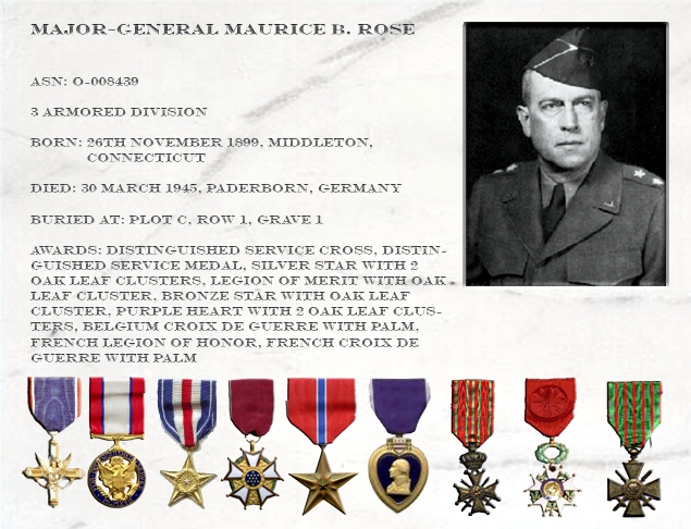 В июле 1943 года, уже в качестве командира танковой бригады, Роуз участвовал в высадке американский войск на Сицилию, и именно его бригада освободила от нацистов Палермо. А потом была Нормандия, где Морису Роузу вверили руководство высадкой на самом сложном участке береговой линии – в пляжной зоне «Омаха» – там вторжение открывала и 101-я парашютно-десантная дивизия. В августе 1944-го Мориса назначили командиром Третьей танковой дивизии в звании генерал-майора. Это армейское подразделение активно сражалось в Нормандии, принимало участие в боях на территории Северной Франции и в Германии. Отличительной чертой возглавляемых Роузом частей была особая напористость. Он предпочитал руководить боевыми действиями, находясь в передних порядках своих войск. Его дивизия получила прозвище «The Spearheads» («Наконечник копья»), что говорило о многом. Под командованием Мориса Роуза Третья бронетанковая совершила рекордный суточный марш-бросок, преодолев рубеж в сто миль, ее танки первыми прорвали оборону «линии Зигфрида», ворвавшись с запада в территориальные пределы Третьего рейха.