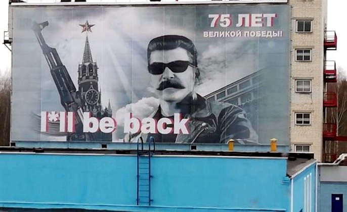 На фоне актуальности – снижения реальных доходов и наличия дотационных регионов, в числе которых в 2014 году оказался Крым, а также санкций Запада – россияне все чаще смотрят на портреты Сталина – не только в старых журналах, но и на баннерах в российских городах. На некоторых из них, размещенных КПРФ, значится многообещающее «Я вернусь!» В этом обещании как бы от имени тирана заложена надежда на избавление от унизительного положения, в котором оказались через 75 лет после Великой Победы и считанные фронтовики, и их потомки в стране – участнице союзнического альянса победителей.