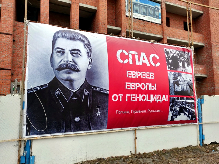 Сургут пошел дальше Новосибирска. Активисты правозащитной организации «Правоведы» установили баннер с благодарностью Иосифу Сталину. Рядом с портретом вождя – пояснение «Спас евреев Европы от геноцида! Польша, Германия, Румыния». Инициатор и финансовый директор идеи – Альберт Леонов, в котором нет ни капли еврейской крови, зато остальные литры бурлят в жилах от сострадания еврейским жертвам Второй мировой.