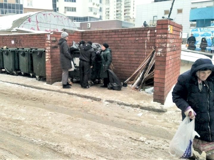 Жителям Екатеринбурга, которые стоят в очереди к мусорным бакам неподалеку от супермаркета, не до оливье. Эти бывшие пенсионеры, предприниматели, товароведы – охотники за «просрочкой», с которой магазин должен расстаться, чтобы его не оштрафовали. «Иногда по три, по четыре часа ждем. Делим по-людски: кому творог нужен – тому творог, кому хлеб – тому хлеб».