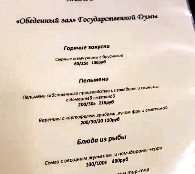Понятно, что подобный обед не предназначен для представителя электората с нищенским доходом. Зато попавшая в столовку Госдумы модель Алена Водонаева в Instagram показала, что почём для слуг народа, продемонстрировав чеки.
