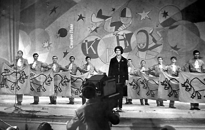 На представление команды мы выходили в образе тореадоров под знаменитый Марш из оперы Кармен. У каждого на груди было кружевное жабо, а в руках красное полотнище, стилизованное под боевой плащ тореро, с шутливо нарисованным на нем быком. На сцене нас было одиннадцать человек, каждому досталось по одной-две фразе. Помню мне досталась фраза, что «…у нас в Белоруссии тоже очень популярен бой быков. Надо видеть, с каким азартом бросается минчанин-пешеход на красный свет светофора». Выступили мы тогда довольно успешно, зал тепло принимал нас и наши шутки в этом экзотическом образе, хотя наше выступление, как и выступление других команд в телевизионной версии было частично урезано…