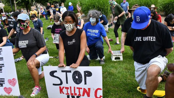 Протесты, вызванные смертью в Миннеаполисе Джорджа Флойда, докатились и до нас. В Таусоне, где располагается администрация графства Балтимор, люди, пришедшие выразить своё недовольство полицией, символично преклонили колено и держались за него столько, сколько держал колено на шее Джорджа Флойда полицейский Дерек Шовин.