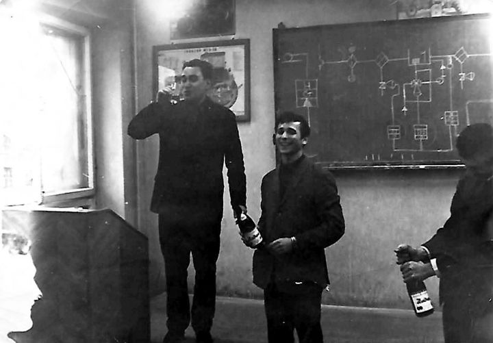 А тем временем проходили мои последние недели и даже дни в стенах института, проходили наши последние лекции. На самую последнюю из них, по автоматике систем теплоснабжения с доцентом Олегом Анатольевичем Мухиным, который при хорошем чувстве юмора, обладал довольно крутым нравом, мы сбросились и принесли ящик шампанского. Никто не решался объявить Олегу Анатольевичу о наших намерениях, но я, всё-таки, решился, и минут за десять до звонка, молча подошёл к кафедре с бутылкой шампанского и начал её открывать. Мухин обалдело посмотрел на меня, на бутылку в моих руках, но от растерянности не смог ничего сказать или пошутить. Я с выстрелом открыл шампанское, налил его в стакан и с поклоном протянул нашему строгому преподавателю. Олег Анатольевич, вдруг улыбнулся, с шумом закрыл свою тетрадь с лекциями, взял из моих рук стаканчик и произнёс прощальный и напутственный тост. Все повскакали со своих мест, начали стрелять пробки, Олег Анатольевич обнял меня, а потом начал обнимать по очереди наших девушек… На этом наши пять лет учебного процесса в институте навсегда закончились. К слову сказать, некоторые мои однокурсники после окончания института из него всё-таки не ушли, а сами стали преподавателями нашего ВУЗа.