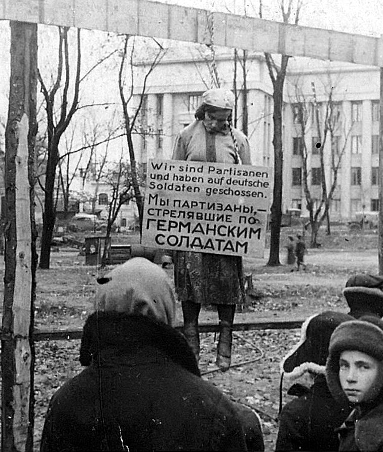 Когда Зою подвели к виселице, местная жительница Аграфена Смирнова ударила ее по ногам палкой, крикнув: “Кому ты навредила? Мой дом сожгла, а немцам ничего не сделала!”, а подруга Смирновой Фекла Солина облила ее помоями.