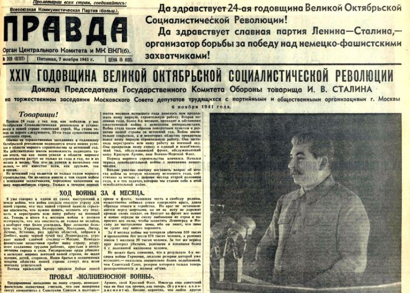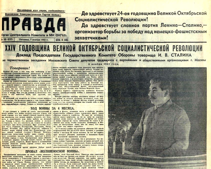 «Не может быть сомнения, что в результате 4-х месяцев войны Германия, людские резервы которой уже иссякают, оказалась значительно более ослабленной, чем Советский Союз, резервы которого только теперь разворачиваются в полном объеме» – и это говорилось 6 ноября 1941 года, когда поражениям Красной армии ещё не видно было конца.