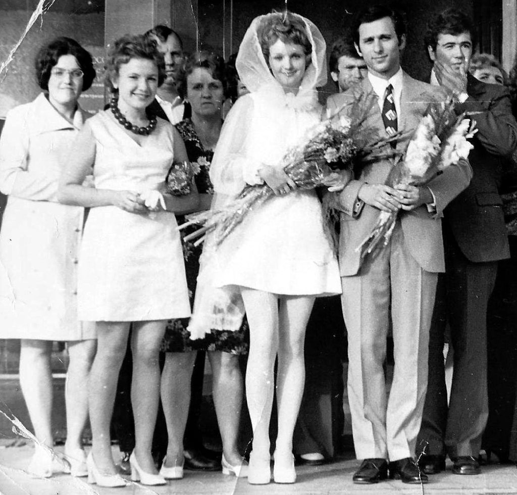 Утром в день свадьбы мой товарищ Лёня пришёл и тщательно побрил меня, буквально до синевы. К обеду пришли аж 4 машины такси, все в абсолютно одинаковом свадебном украшении, и мы поехали на квартиру моего брата, где перед свадьбой разместилась вся Людина семья, за невестой.
