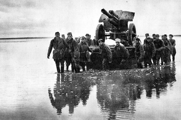 Шаланды полные десанта шли на Крым, но из-за сильного шторма десант 56-й армии не смог высадиться своевременно.