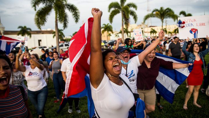 15 июля. Кубинцы, живущие во Флориде, собрались у здания Капитолия штата в поддержку требований соотечественников.