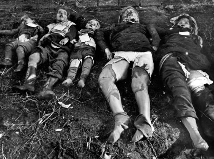 После резни жертв похоронили в братской могиле на местном кладбище».