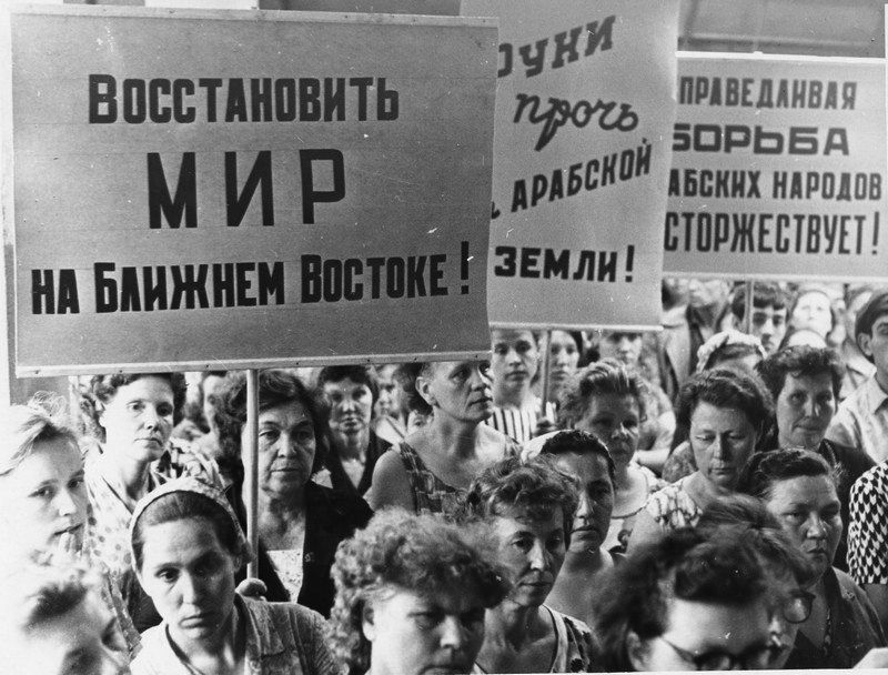 Во время исторической Генеральной Ассамблеи ООН 1947 года, именно голоса делегаций СССР и его сателлитов обеспечили принятие решения о создании государства Израиль. Но уже через 3 года началась совершенно дикая, разнузданная антиизраильская пропагандистская кампания, плавно перешедшая в антисемитскую – кульминация её пришлась на начало 1953 года и, по идее, должна была закончиться всесоюзным погромом с депортациями (уже были готовы эшелоны и пресса загодя выдумывала передовицы с заголовками типа «Русский народ спасает еврейский народ!» – это о будущих ссылках за Полярный круг «подальше от погромщиков»), но Сталин подох, его псы перегрызлись над трупом и всем стало не до евреев.