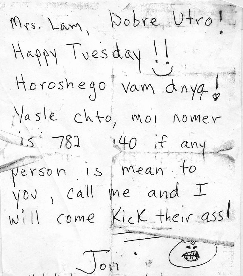 Хочу сказать, что Джон единственный из моих американских знакомых, кто, общаясь с нами, начал всерьёз изучать русский язык. Так, он был у нас в гостях, мы вместе поужинали и Люда прошла на кухню, чтобы зарядить посудомойку. Джон ринулся за ней помогать, но Люда никак не могла найти губку-мочалку, которая куда-то запропастилась. Тогда он стал в позу римского императора и с пафосом по-русски произнёс: