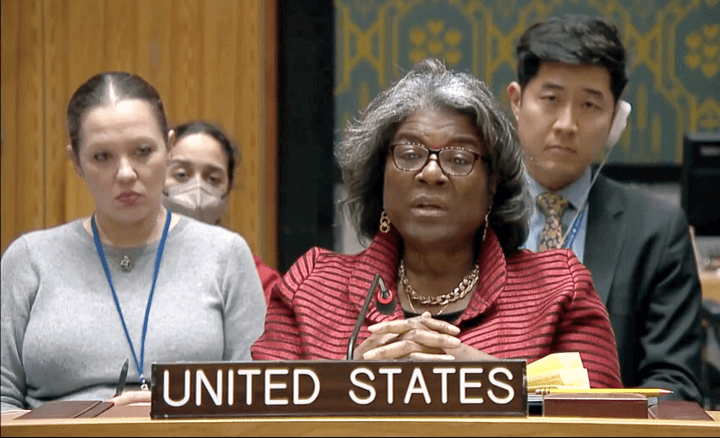 13 января 2023 года на брифинге Совета Безопасности ООН выступила представитель США в ООН Линда Томас-Гринфилд: