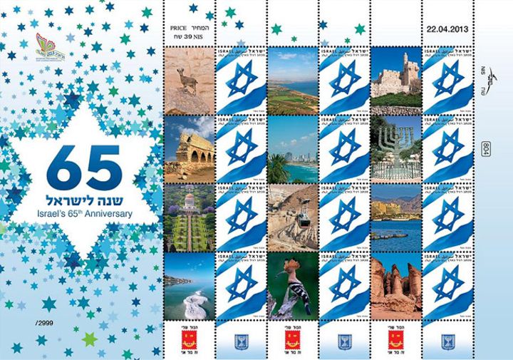 «Израилю-65» – эта надпись вписана в Звезду Давида на ярком блоке Почтовой службы Израиля, датированном 22 апреля 2013 года. Создатели блока акцентировали внимание на архитектурных памятниках разных времен, достопримечательных местах страны, включая побережье Средиземного, Мертвого и Красного моря, а также озера Кинерет. Отдельная марка в блоке посвящена Бахайскому Храму и садам вокруг него, расположившимся в Хайфе, представлена и израильская природа, в том числе – удод – небольшая птица, размером с голубя, с длинным узким клювом и хохолком, ставшая национальным символом страны. Блок этот вполне можно было бы снабдить надписью: «Добро пожаловать в Израиль».