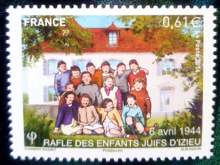 Возвращаясь к истории семьи Анны Франк, напомним: утверждалось, что семейство это стало жертвой доноса, хотя личность доносчика так и не была установлена. В любом случае, были те, что выдавали укрывавшихся евреев нацистам, в то время как другие, рискуя собственными жизнями, прятали евреев, проявляя к безвинно преследуемым милосердие и сострадание. На французской марке, которая была выпущена в 2014 году, изображена группа подростков на фоне невысокого дома в сельской местности, и обозначена дата – 6 апреля 1944 года. Непосвященным трудно понять, о ком и о чем идет речь. А стоит за этой почтовой миниатюрой история деревушки под названием Изьё, расположенной между Лионом и Шамбери. В марте 1943, когда северная часть Франции была оккупирована германскими нацистами, и правил там профашистский режим, супружеская пара – Мирон и Сабина Златины создали в Изьё приют для еврейских детей, чьи родители были депортированы в лагеря смерти. Семейные корни Сабины (урожденной Шваст) были польско-еврейскими, а Мирон появился на свет в Орше, на территории нынешней Беларуси. Молодые люди познакомились и поженились во Франции, занявшись фермерством. В доме, где до войны располагался в Изьё детский летний лагерь, супруги открыли приют, и больше ста детей получили кров и помощь. Для части из этих ребят Сабине и Мирону удалось найти приемных родителей, в том числе, переправляя их на территорию соседней, нейтральной Швейцарии. Дата на почтовой марке, появившейся 70 лет спустя, обозначает тот день, когда в Изьё пришла беда.