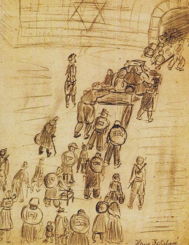 О лагере этом сказано и написано много. Известно, что представлялся он нацистами, как «образцово-показательный». Туда отправляли музыкантов, писателей, артистов, художников, для которых создавались приемлемые условия, чтобы наладить культурную жизнь. Силами заключенных проводились занятия, читались просветительские лекции, игрались концерты, ставились спектакли, снимались пропагандистские фильмы. В лагере содержалось и 15 тысяч детей, оторванных фашистскими извергами от своих семей, лишенных безоблачного детства. В лагерь разрешалось брать с собой чемоданы, не превышавшие весом 50 килограммов. И Фридл наполнила их карандашами, листами бумаги и другими принадлежностями для рисования. Попав в Терезин, она отчетливо осознала, что может помочь обездоленным ребятам – пусть не стать профессиональными художниками, но отвлечь их от всех невзгод, и подарить луч света в непроглядном мраке. И она стала обучать всех желающих технике рисунка, искусству акварели и коллажа. Как поясняла сама Фридл, она стремилась «пробудить и сохранить в детях дух творчества, развить фантазию, научить юных узников думать, наблюдать, оценивать, и превозмогать тяготы лагерной жизни». Муж Фридл, Павел, работал в лагере плотником, а в нерабочее время мастерил по просьбе жены столы и лавки для детей. Помогал им как и чем только мог и в других начинаниях. И благородная цель была достигнута. «Мы выражали в рисунках свои надежды и мечты, – вспоминали выжившие в лагере дети, – и переносились в другой мир – добрый и светлый, где нам ничего не грозило, и это помогало справляться с трудностями тех условий, в которых мы оказались, лишенные родительской заботы и тепла». Не имея собственных детей (она несколько раз беременела от Франца Зингера, но он, каждый раз, заставлял ее делать аборт), Фридл стала в Терезине для своих учеников, по сути, матерью. А их было, в общей сложности, 660 мальчиков и девочек, в возрасте от 9 до 16 лет. Большинство из них, увы, погибло от рук нацистских палачей – когда устроенный показной «спектакль» в Терезиенштадте для комиссии международного «Красного Креста» закончился. В июле 1943 года Фридл написала руководство «Детский рисунок», в котором рассказывала о своей методике обучения ребят. Этому предшествовала выставка детских работ, организованная в одном из подвалов. «Скудность художественных средств – это не большая беда, – утверждала Фридл. – Самая большая беда – это сломленный дух». О наставлениях, которые давала Фридл, одна из ее подопечных вспоминала так: «Чтобы руки нас слушались, мы, по ее совету, делали высвобождающие движения (дыхательные упражнения для рук), и только потом она давала задания, и мы рисовали – легко и свободно. «Ни о чем не думайте, просто рисуйте, это само по себе – такое счастье», – говорила нам Фридл, – и все, в тот момент, действительно, ощущали себя счастливыми».