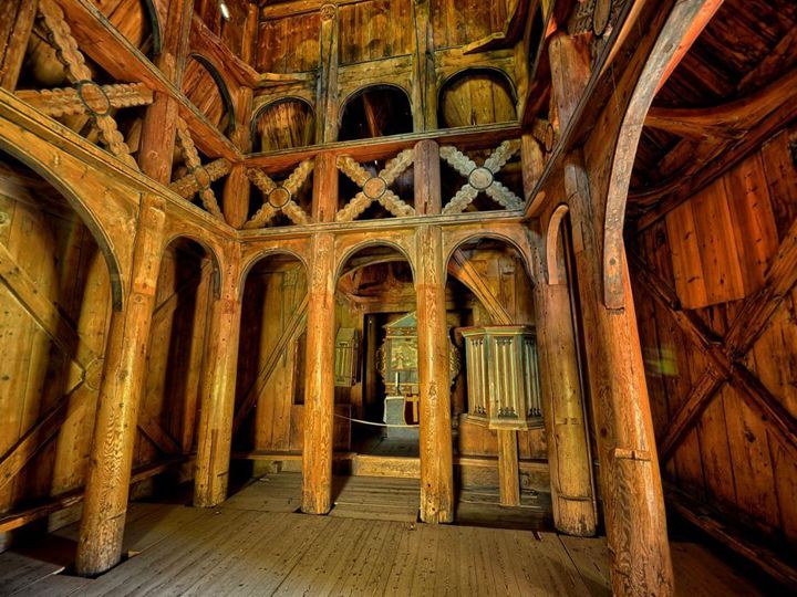 Но вернемся к “нашим” викингам. Ставкирка в Боргунде (норв. Borgund stavkirke «Боргундская деревянная церковь») – одна из самых древних сохранившихся каркасных церквей. Расположена в провинции Согн-ог-Фьюране, Норвегия. Всего в Норвегии было построено более 1500 ставкирок, до сегодняшнего дня в разной степени сохранности дожили только 28. Ставкирки – это уникальный вклад Норвегии во всемирное культурное наследие. Церковь, которую мы посетили, была построена предположительно в 1150-80 гг. в честь апостола Андрея Первозванного, в качестве строительного материала был частично применён ясень, священное дерево в германо-скандинавской мифологии: его мифологический прообраз, ясень Иггдрасиль (Мировое Древо скандинавов), соединял небо Асгард и землю Мидгард с царством мертвых Хель.