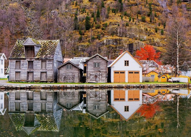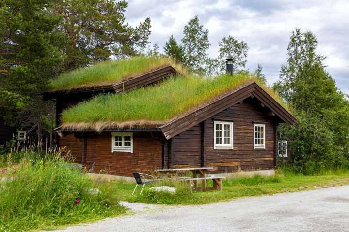 С гор сбегают водопады, в озере как в зеркале отражается несколько старинных деревянных построек… На многих дома трава на крыше. Это издавна. Но травяные кровли популярны в Норвегии и сейчас. Особенно для покрытия крыш хитта (hittе) – загородных домов норвежцев. А также многочисленных гостиниц для туристов. Природе вреда нет и глаз досужего туриста радуют. И хозяину жилища приятна крыша, колышущаяся зелеными волнами на ветру. Улучшается микроклимат, стабилизируется температура в доме. При этом кровля не требует кропотливого ухода только благодаря уникальным особенностям норвежского климата c громадным количеством осадков, занесенного даже в книгу рекордов Гиннесса. Создание таких крыш оправдано только в непосредственных условиях норвежской погоды и норвежского же дёрна. (Правда, из окна собственного дома, отнюдь не в Норвегии, я вижу крышу соседского дома, тоже поросшую травой). И традиции соблюдены. Тролли довольны. Траву изобретательные норвежцы не скашивают в случае надобности, а подсаживают на крышу козу. Коза высоты не боится и поедает всю растительность. Туда поднимали животных в холодные зимние дни, а также спасая их от возможных ночных воров.