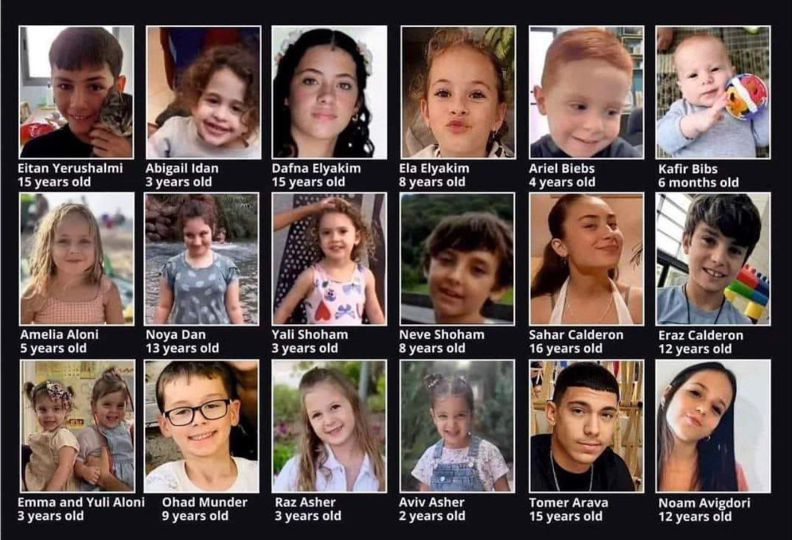 Младенцы на руках у матерей, пережившие Холокост бабушки и дедушки в инвалидных колясках, захваченные и удерживаемые в заложниках. Заложники, которых ХАМАС сейчас угрожает казнить в нарушение всех норм человеческой морали.