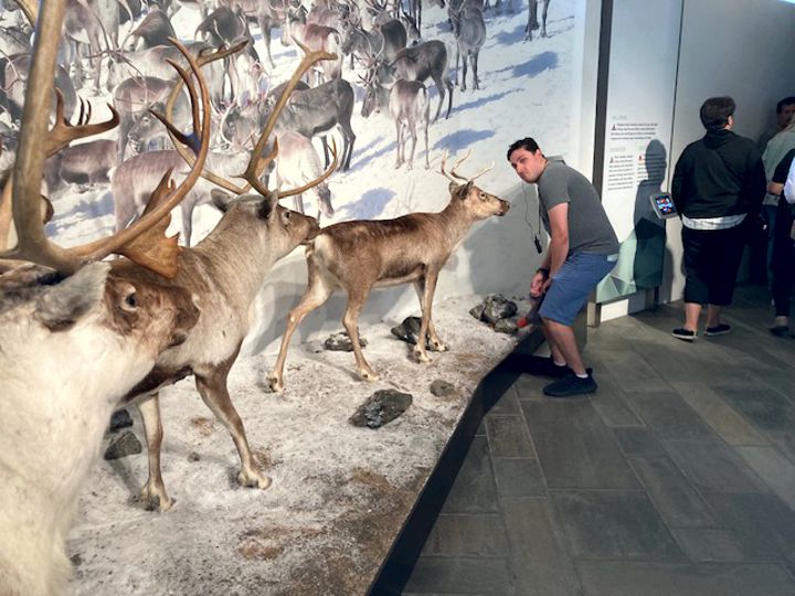 Центр расположен на трех этажах. Прямо у входа находится панорамный кинотеатр, в нем показывают видовой фильм о местах, которые мы уже видели и которые нам предстояло увидеть. Честно отмечу, при большом количестве подобных фильмов, что мне довелось увидеть в различных природных парках мира, этот был лучшим: по объёмности изображения, выбору ракурсов, по яркости красок, по эмоциональному и даже физическому воздействию. Многие виды уже были нам знакомы, но предстали перед нами с других точек зрения, расстояний. Где-то это была невообразимая панорама, где-то, наоборот, казалось, что до знакомого места можно просто дотронуться рукой… После фильма нас ждал музей местной флоры и сауны. Он большой – на нескольких уровнях. Чучела животных в различных стадиях и условиях их жизни, а рыбы (форели, лососи и многие другие) были показаны живьем различного возраста в различного объёма бассейнах. Все демонстрируется с необычайным мастерством, с использованием последних технических достижений.