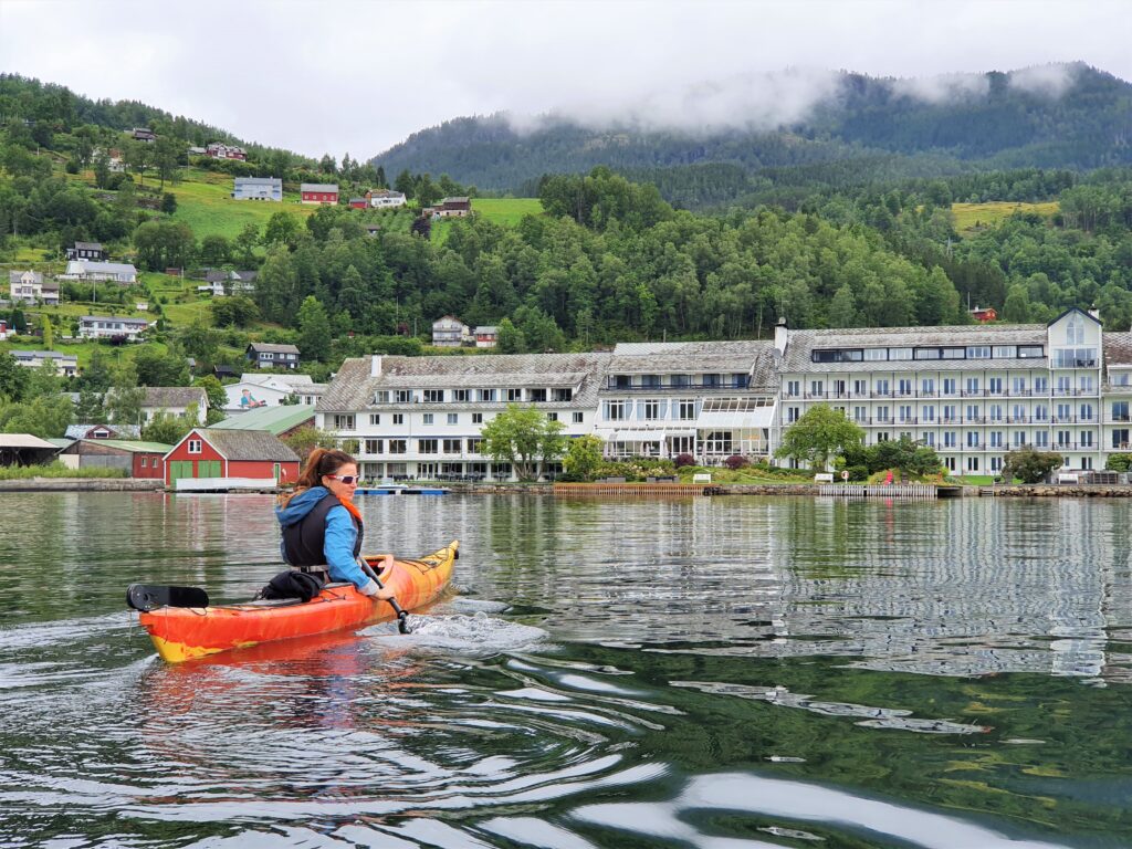 Пошли поужинать в гостиничный ресторан. Кухня была закрыта, но хозяйка что-то предложила. Ей помогала дочка. Как мы и предположили, хозяева были не норвежцы. Из Бельгии, семья – папа, мама и дочь. Купили ресторан в 2019 г. перед пандемией. Хорошо вложились в ремонт. И вдруг всё остановилось… Сейчас оживляется. Но работают пока, в основном, втроем. При необходимости поднанимают кого-либо. Это мы увидели назавтра: помогали за завтраком, помогали управиться с велосипедами и каяками, кто-то сидел в маленьком магазинчике.