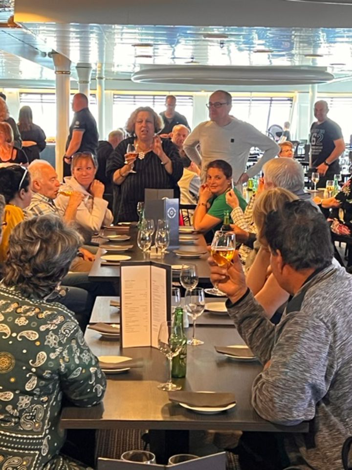 Ужин, который назвали “Королевский буфет”, был назначен на 7 вечера в ресторане “7 Seaways”. В назначенное время нас препроводили за два стола, предназначенных для нашей группы, и началось… Это даже трудно описать. Но не могу удержаться. Сначала предложили по бокалу вина или кружке пива, а потом… Все, как в предыдущих лучших наших завтраках, только в большем разнообразии, еще отдельный стол с морепродуктами, включая раки, еще супы, еще… И все в количествах – не могу! Народ поначалу ошалел, решая проблему: попробовать понемножку, но, по возможности, всего или навалиться на что-то любимое и привычное. Примите во внимание, то ведь был “шведский стол”! И в придачу увесистое меню с огромным количеством спиртных напитков и коктейлей.
