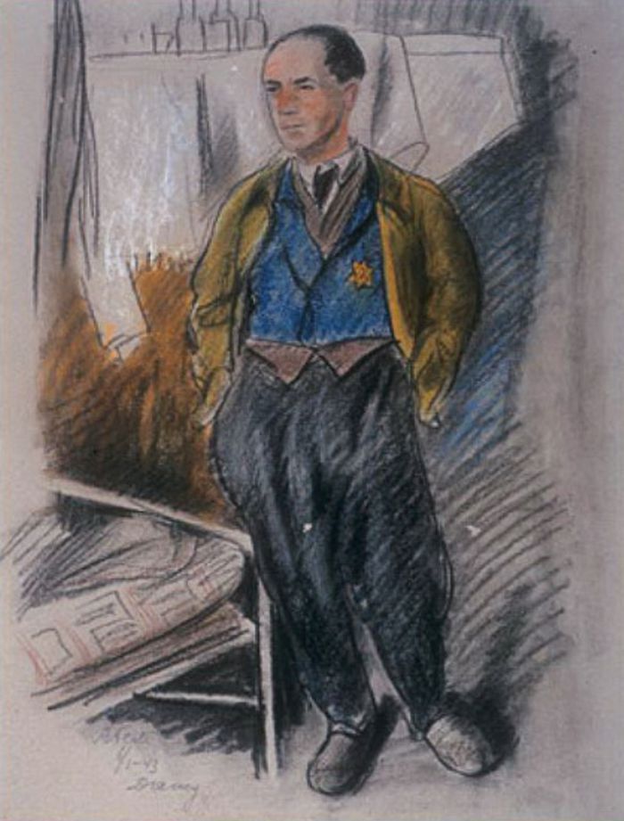 Заслуги Адольфа Федера перед Францией были отмечены врученным ему «Орденом Академических пальм» – так переводится его название с французского языка на русский язык. Все изменила начавшаяся Вторая мировая война. Покидать Париж художник отказался. Отдавал ли он себе отчет в том, что его, еврея, и жену Симу ждет в нацистской оккупации? Сказать можно одно: это был момент из тех, когда каждый решал для себя, как ему поступить, руководствуясь при этом собственными мотивами. Федер сделал свой выбор. Он и его супруга вступили в ряды антифашистского Сопротивления. Но в подпольной группе, в которую они входили, оказался предатель, что выяснилось позднее. Почувствовать надвигавшуюся беду супруги не смогли. 4 июня 1942 года по доносу они были арестованы вишистской полицией и брошены в старую военную тюрьму «Шерш-Миди», в ту самую, где в свое время состоялся, получивший международный резонанс, суд над капитаном Дрейфусом. В сентябре 1942 года Федер с женой были переведены в транзитный лагерь Дранси в окрестностях Парижа, который превратился в своеобразный «зал ожидания» перед отправкой в концлагерь. Оттуда, после комплектации «эшелонов», евреев депортировали в Освенцим и Биркенау. Коллекцию произведений искусства Федера фашисты конфисковали. За колючей проволокой Адольф продолжил рисовать, понимая, должно быть, что его работы, как и он сам, обречены на гибель. Несмотря на запрет заниматься рисованием, художник сумел (и успел), что достойно глубокого уважения, создать в лагере Дранси альбом карандашных рисунков, ставший важным и ценным документом – свидетельством Холокоста. Один рисунок из этой серии получил наибольшую известность: автопортрет мастера живописи с желтой звездой.