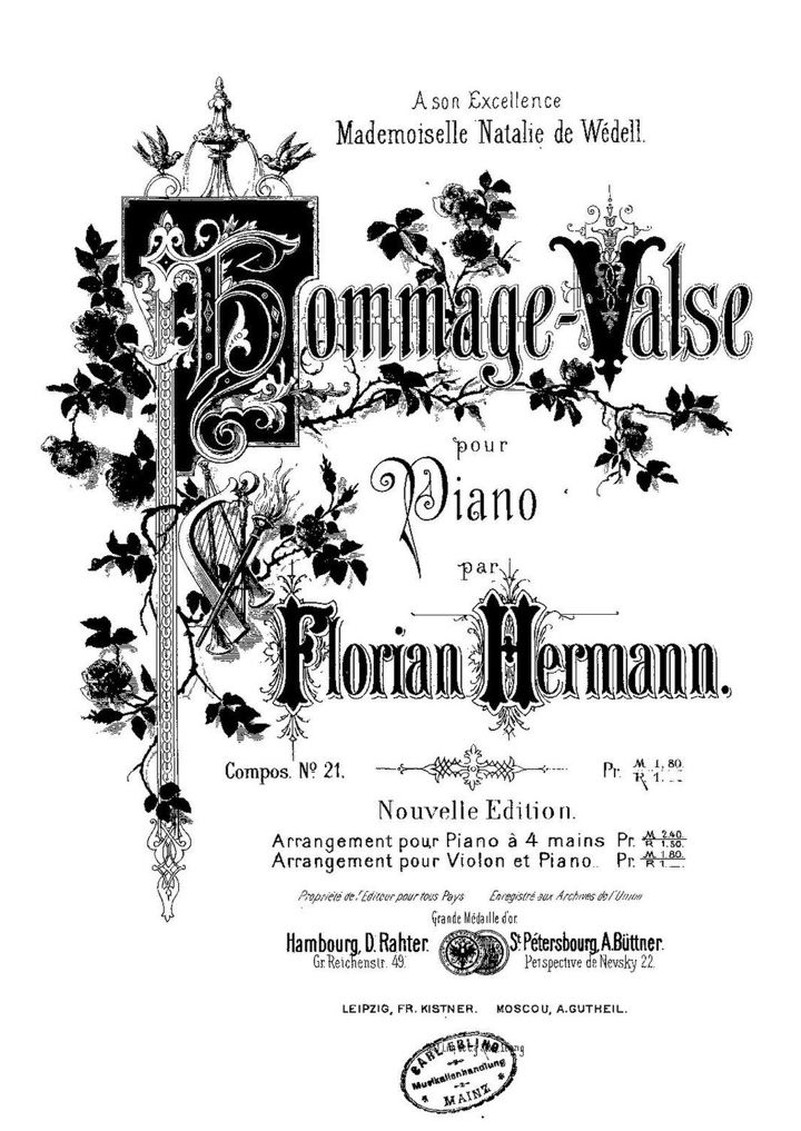 Но это слова. А музыка? Музыку написал в Вильнюсе композитор Флориан Герман, который возможно и не читал стихов Евгения Гребёнки, и уж меньше всего думал о цыганах. Свое произведение он назвал вальс «Hommage», что переводится как вальс «Посвящение».