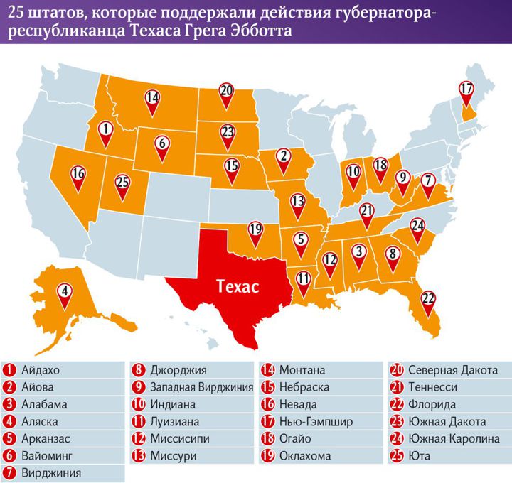 Напряженность в Техасе, пишет журнал Newsweek, возросла после того, как Верховный суд США 22 января постановил, что федеральные агенты могут удалять заграждения вдоль южной границы штата, установленные по приказу губернатора Техаса Грега Эбботта.