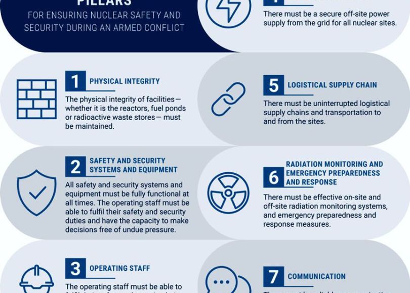 Мы выражаем нашу полную поддержку Семи важнейшим столпам ядерной безопасности, а также Пяти конкретным принципам МАГАТЭ с целью предотвращения ядерной аварии на ЗАЭС.