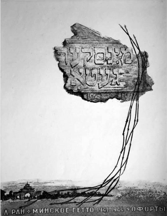 Стоит добавить: о трагедии Минского гетто, до появления цикла офортов Рана, в стране, где он жил и творил долгое время известно было в основном по книге «Мстители гетто» Гирша Смоляра – бывшего узника, одного из руководителей подпольной организации в гетто Минска. Эта книга, написанная на языке идиш, была выпущена в Москве в 1946 году, а через год ее издали, хотя и небольшим тиражом, в переводе на русском языке. Прочел эту книгу и Лазарь Ран, и она помогла ему в его творческих поисках и устремлениях.