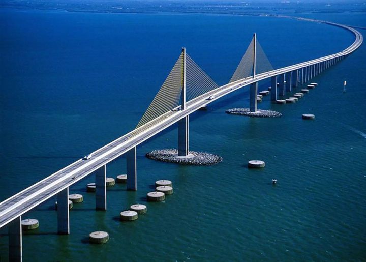 По его словам, в некоторых мостах используется несколько систем, например, в Sunshine Skyway Bridge, у которого есть как искусственные острова, так и «дельфины», защищающие его пилоны, говорит он.