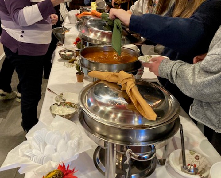 Была в этом конкурсе удивительная прелесть: и в разнообразии таких разных шести супов с общим названием, и в таком красивом оформлении праздника, и в дружелюбности всех участников, и в изобилии закусок от сала и украинской “кивбасы” до красной рыбы и красной икры, и в чарочке настоящей украинской “горилки”, и в тщательно скрываемой грустной ноте, связанной с тем, что теперь происходит в Украине.