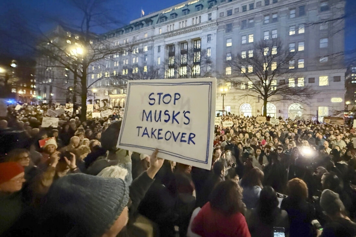 Утром 14 февраля в день святого Валентина, покровителя влюблённых, активисты профсоюзов и государственные служащие собрались у здания Хьюберта Х. Хамфри в Вашингтоне, чтобы выразить протест против сокращений.