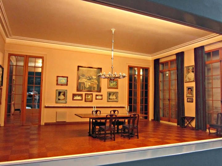 В первом небольшом зале привлекали внимание две ниши в стене, закрытые стеклом. Внутри находились макеты интерьера квартиры Поля Гийома того времени, когда его коллекции находились в его квартире. На стенах висят миниатюрные копии картин в рамах, среди них – копия картины “Маленький кондитер”, которая когда-то привлекла внимание американского доктора Барнса.